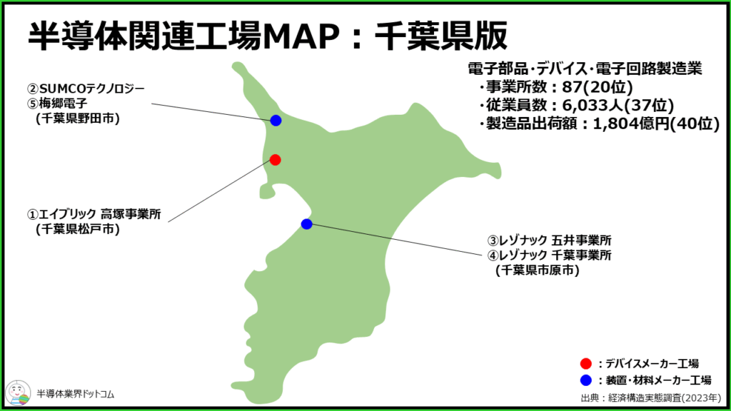 千葉県に立地している主要な半導体関連工場を5つまとめました。