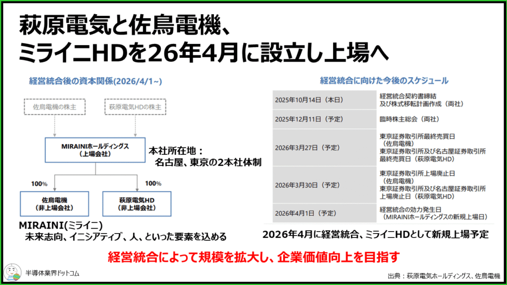 萩原電気と佐鳥電機、ミライニHDを26年4月に設立し上場へ