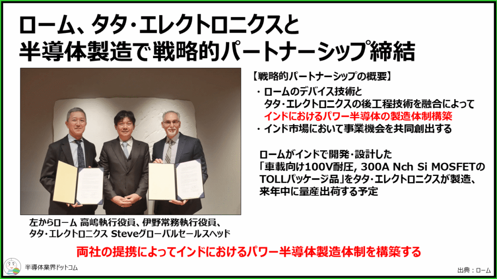 ローム、タタ・エレクトロニクスと半導体製造で戦略的パートナーシップ締結