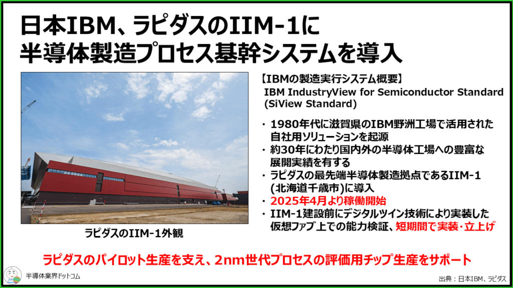 日本IBM、ラピダスのIIM-1に半導体製造プロセス基幹システムを導入