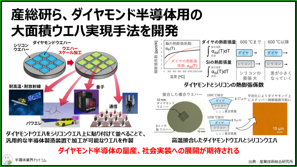 産総研ら、ダイヤモンド半導体用の大面積ウエハ実現手法を開発