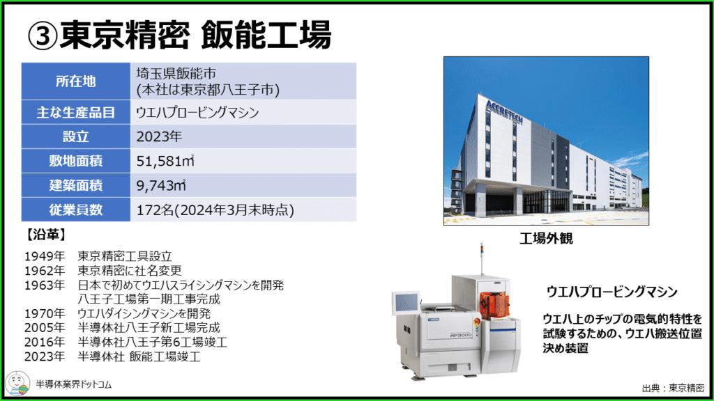 本社に隣接している八王子工場の拡張を進め、飯能工場は2023年に竣工しています。この工場では、完成したウエハを試験する際に使用されるウエハプロービングマシンの製造を行っています。