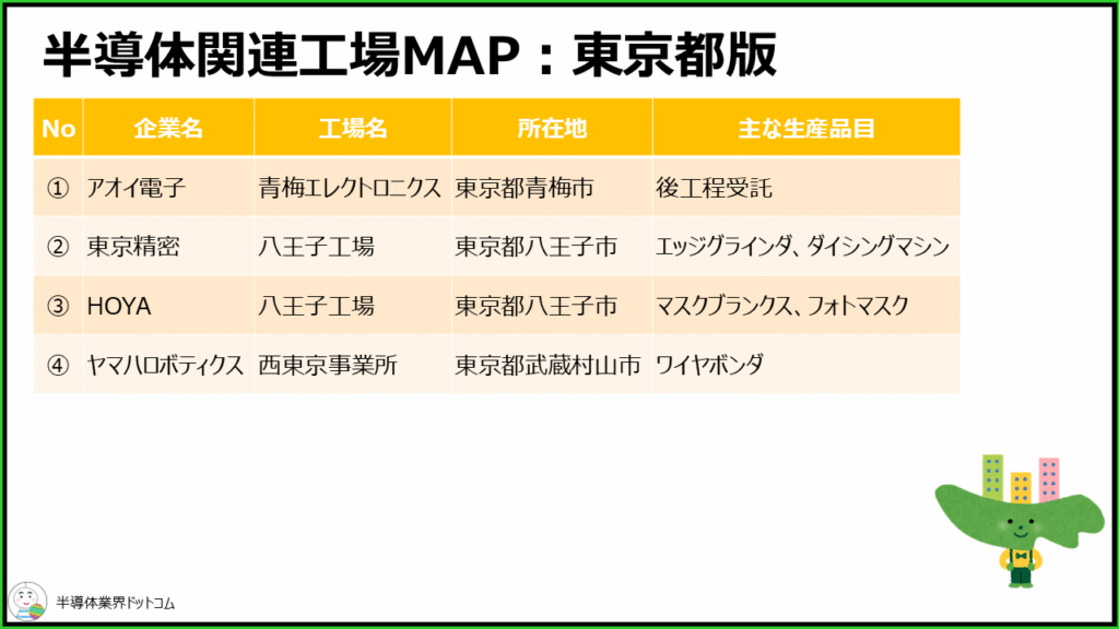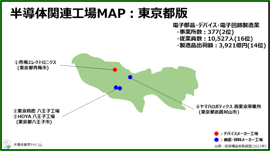 東京都に立地している主要な半導体関連工場を4つまとめました。